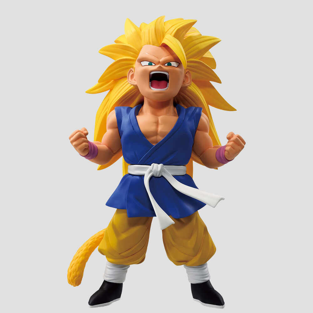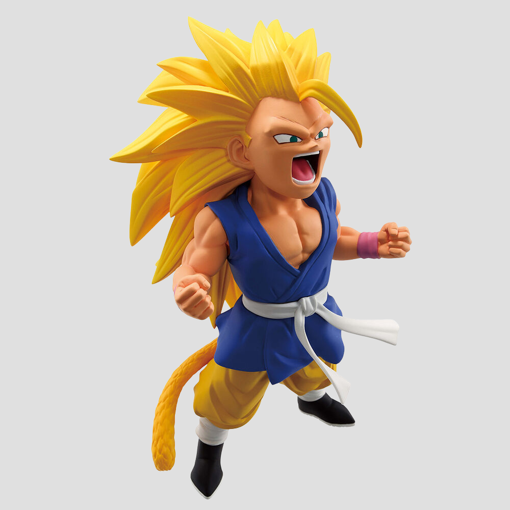 Esta figura de Goku en Super Saiyan 3 refleja una de las transformaciones más intensas del guerrero saiyajin. Con su melena dorada infinita y expresión desafiante, esta versión de Goku brilla por su energía y determinación en combate.